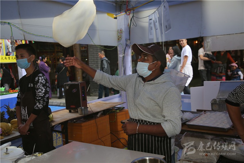 幾十頂帳篷擠滿了幾百米長的街道,帳篷內(nèi)的攤位擺滿了琳瑯滿目的特色美食,來自各國各地的特色小吃匯聚在此,散發(fā)出的香味互相交融。每一個攤位面前擠滿了食客,都在迫不及待地想品嘗美味,攤位上的每一位商家都在熱情的招呼著食客們。