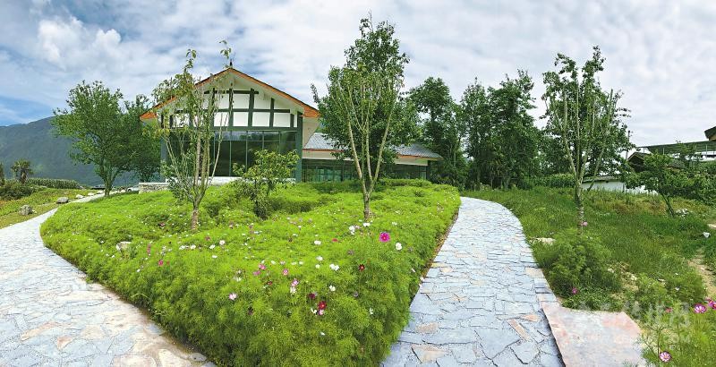 四畝田園酒店位于丹巴縣聶呷鄉(xiāng)高頂二村,其背依卡帕瑪群峰,面向墨爾多神山,是甲居藏寨的后花園。酒店精美的藏式外觀搭配了全玻璃的落地窗,讓美景無處不在眼前。房?jī)?nèi)干凈整潔的大床、現(xiàn)代簡(jiǎn)約的裝飾盡顯舒適與輕松。門廳內(nèi),古色古香的茶室無一不彰顯出店家的文雅與大方。房前屋后,姹紫嫣紅的花兒花香四溢,五彩的蝴蝶紛紛在花叢中翩翩起舞。后院的草地里,繁花盛開,一座小亭子、一架秋千、幾張?zhí)梢危@是心中的詩意和遠(yuǎn)方,是“采菊東籬下,悠然見南山”的怡然自得和超凡脫俗。