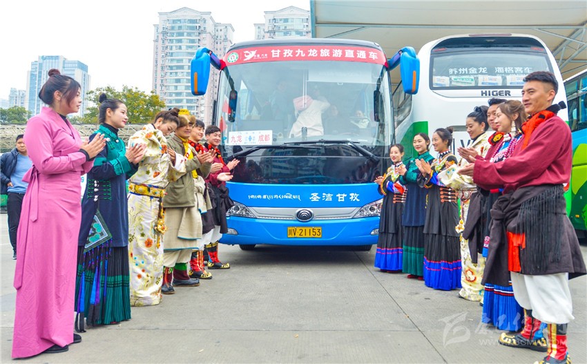 景區(qū)直通車授牌儀式和自駕游車隊授牌儀式也是本次推介會的亮點。兩項儀式旨在進(jìn)一步方便廣大游客到九龍旅游,并開啟成都直通九龍旅游及運(yùn)輸融合發(fā)展的歷史征程。現(xiàn)場,貼有“穿越藏彝走廊,體驗民俗風(fēng)情”和“甘孜九龍旅游直通車”車標(biāo)的汽車引得不少人注目,有的還當(dāng)即向工作人員咨詢票價、路線。