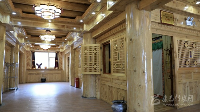 這幢民“居”之所以是“宿”,是因為它的底層被設計建造成為了11間客房,安裝現(xiàn)代化設施后用于旅游接待。而二樓則為臥室、經(jīng)堂、客廳、貯藏室、廚房、走廊和陽臺等,在建造中最難的一道工序便是室內(nèi)裝修的雕刻和繪畫,此二門藝術(shù)可謂“崩科”之精華所在,極具康巴文化特色。