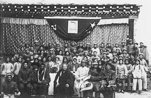8月22日上午,西康省藏族自治區(qū)政府開會(huì)歡迎北京來(lái)的視察組和我們實(shí)習(xí)隊(duì)師生。自治區(qū)副主席阿旺加錯(cuò)介紹了1952年2月康定解放,10月召開各界代表會(huì)議、成立西康省藏族自治區(qū)(即為現(xiàn)甘孜藏族自治州)的過(guò)程。苗副政委特別強(qiáng)調(diào)地指出:“實(shí)習(xí)隊(duì)不遠(yuǎn)千里來(lái)康區(qū)學(xué)藏語(yǔ)文,是歷史上從來(lái)沒(méi)有過(guò)的事?,F(xiàn)在自治區(qū)政府提出‘漢族干部藏族化’的口號(hào),干部要藏族化,就要學(xué)習(xí)藏語(yǔ)文,這是一個(gè)思想改造的過(guò)程,對(duì)肅清大漢族主義思想是有幫助的。”
