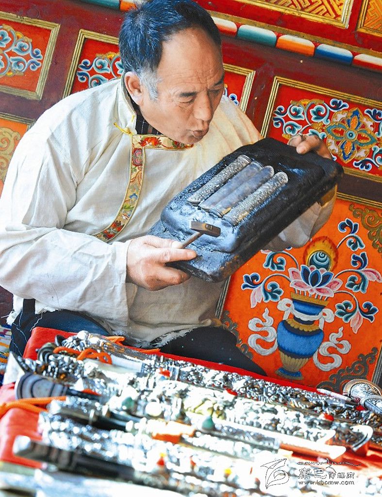 作為省級非遺項目“白玉河坡藏族金屬鍛造技藝”代表性傳承人,呷確·曲登的藏刀鍛造手藝遠近聞名,經(jīng)常有外地游人前來拜訪和購買。“聽長輩說,我們家族第一代傳人,就是格薩爾王時期著名工匠呷西青甲布。”