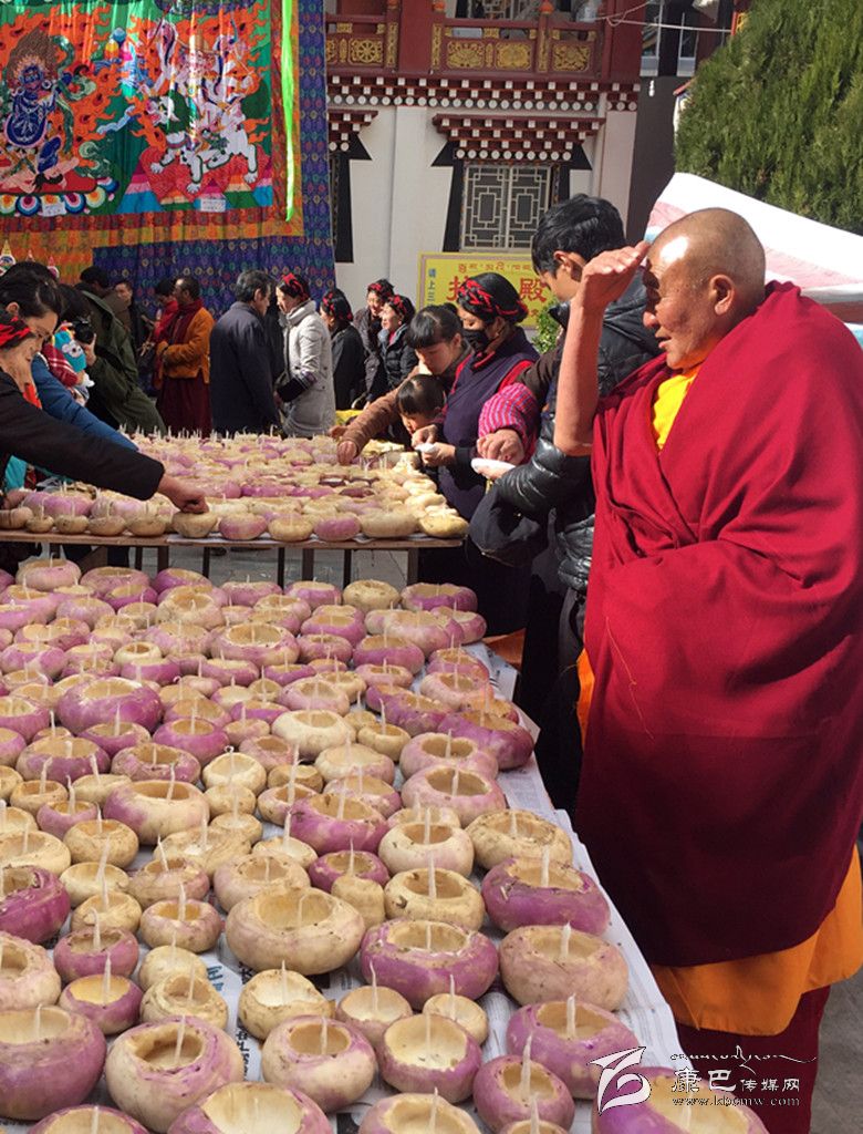 燃燈日,藏語(yǔ)音譯“嘎登安曲”,意為“五供”。相傳公元1419年藏歷十月二十五日,藏傳佛教格魯派創(chuàng)始人宗喀巴大師圓寂。由于宗喀巴大師深受僧俗大眾的敬仰,為紀(jì)念他而將這一天定為“燃燈日”。