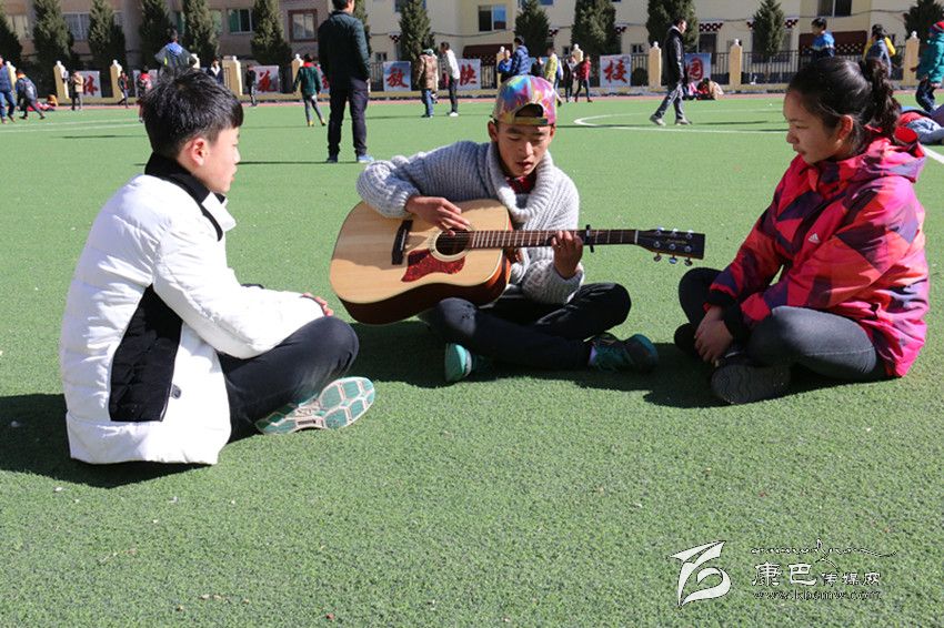 “白云下一座溜溜的城/聽著溜溜的歌聲/李家那溜溜的大姐喲/溜溜愛上藏家大哥喲/尋夢(mèng)在溜溜的跑馬山/我推著金桶溜溜轉(zhuǎn)/折多河溜溜穿城過喲/頌經(jīng)聲溜溜的傳承喲/悠揚(yáng)琴聲在溜溜小城/我溜溜等待著愛人/跑馬山龍打溜溜撒喲/心就在溜溜城中活……”最近一首名叫《溜溜》的歌曲刷爆了記者的朋友圈,不到一天的時(shí)間點(diǎn)擊率達(dá)到12000多,干凈的嗓音碰上吉他、貝斯等流行元素,給聽眾帶了一種不同的音樂享受?!读锪铩返脑~曲作者周麒(當(dāng)然他也是原唱之一)和主唱昂汪央金拉姆、周楠都是來自康定中學(xué)的學(xué)生,在冬日的午后,記者在康定中學(xué)的籃球場(chǎng)見到了這三位一臉天真的原創(chuàng)者。初見記者,他們還有一些靦腆、緊張,但是一談到音樂,他們立刻有了說不完的話。