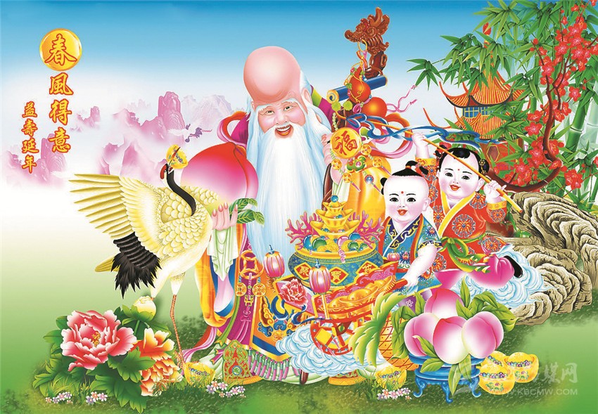 年畫(huà)對(duì)人作為一個(gè)特殊物種的感性、感覺(jué)、感官的視覺(jué)包圍,是建立在民居、家庭、居室對(duì)身體的包圍(物理空間)基礎(chǔ)之上的,也是建立在年畫(huà)的張貼對(duì)人的精神恐懼的安慰和安撫并使之安寧的精神包圍(文化空間)之中的。這雙重的視覺(jué)包圍還包括了一個(gè)從物質(zhì)和精神的家園,到對(duì)人的出身、成長(zhǎng)、成年、老齡、死亡的人生過(guò)程的全程包圍和看見(jiàn)。