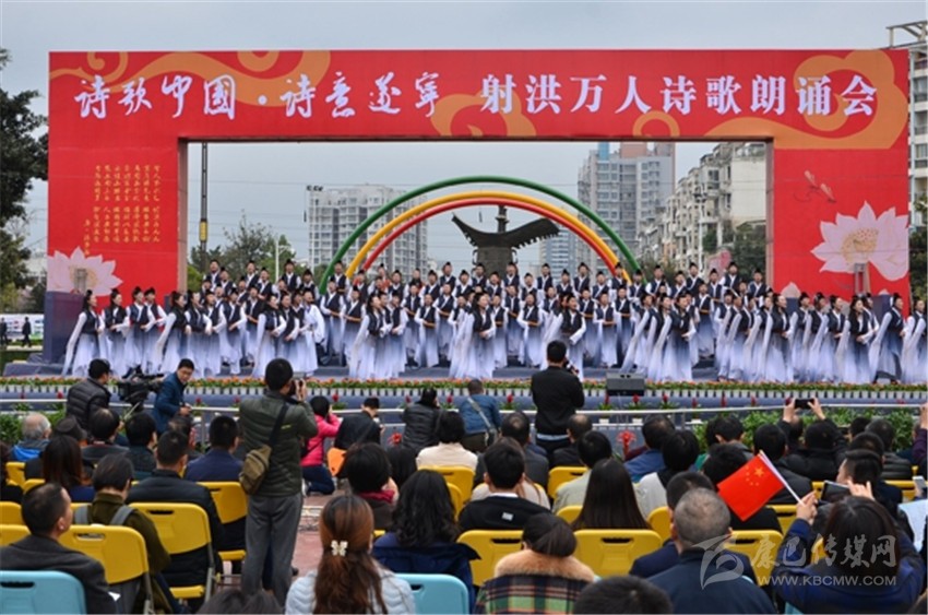 當天,來自全國各地的百余名詩人和新華網(wǎng)、人民網(wǎng)、光明網(wǎng)、鳳凰網(wǎng)、中新社、騰訊大成網(wǎng)、四川日報、四川電視臺等近40家中省媒體記者出席了萬人詩歌朗誦會。
