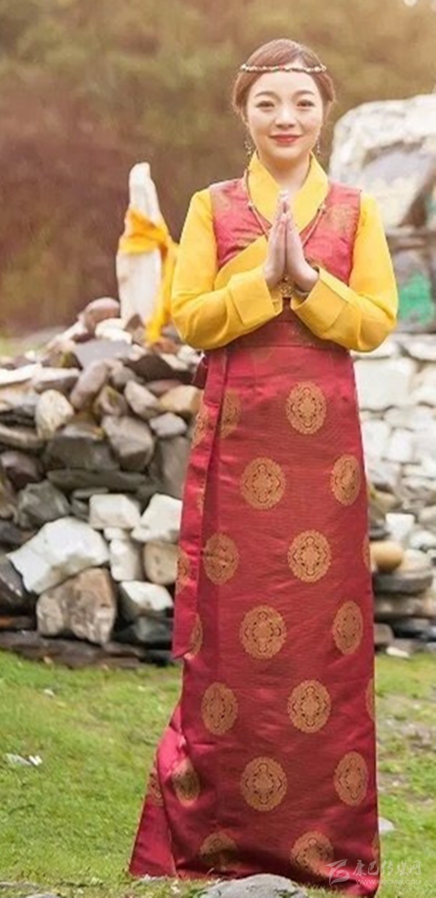 無論是經(jīng)典的黑色立領(lǐng)上衣還是金邊裝飾的翻領(lǐng)上衣,都十分時髦美觀,配上做工精細,由毛呢、氆氌等材料制成的充滿民族特色花紋的下衣,加上華麗珠寶鑲嵌的腰帶是對傳統(tǒng)藏裝的傳承與發(fā)展。