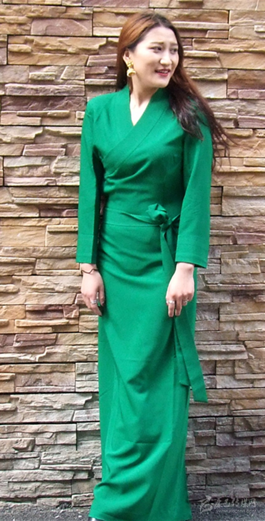 春天,小草發(fā)芽了、柳枝綠了……到處都是綠的主基調(diào),此款藏裝抓住了這一特色,整款由綠色統(tǒng)領(lǐng),設(shè)計簡約大方又充滿潮流味兒。有袖的西式藏裝沒有繁瑣復(fù)雜的著裝過程,穿在身上也是十分便捷輕松,同時還完美勾勒出了女性的曲線美;外搭做工精細的小馬甲,不僅時尚,還是天氣突然變幻時暖背暖身的一大貼心設(shè)計。