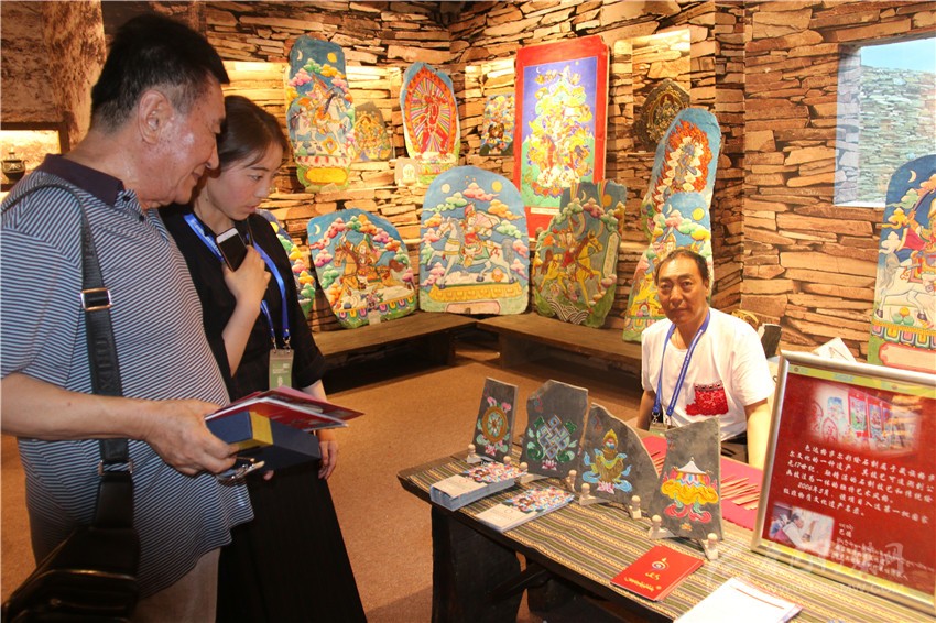 記者在現(xiàn)場看到,多位非遺傳承人借助聲光電、AR等新技術(shù)進(jìn)行演示,立體直觀地展現(xiàn)了走廊區(qū)域文化產(chǎn)業(yè)項(xiàng)目在推動特色文化資源與科技融合方面的新趨勢。其中,我州展出的菩提珠、勉唐派唐卡、郎卡杰唐卡等民族特色工藝產(chǎn)品,都給觀眾留下了深刻印象。