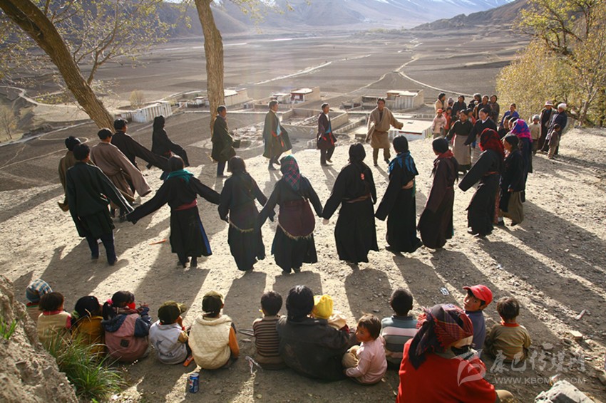 弦子又名為“協(xié)”,在甘孜縣境內(nèi)有孔薩協(xié)欽、仲薩協(xié)、格達(dá)協(xié)、郎扎協(xié)等,其中白利寺五世格達(dá)活佛創(chuàng)建于二十世紀(jì)三、四十年代的格達(dá)弦子尤為著名,跳此舞無(wú)時(shí)間規(guī)定。起初用此歌祭祀亡魂、超度靈魂、免荒災(zāi)。以后逐漸豐富其內(nèi)容而流傳于民間。表演時(shí)無(wú)伴奏樂(lè)器,起舞時(shí),男女兩隊(duì)輪歌共舞,圍成圓圈,相對(duì)而立,男女舞者統(tǒng)一著樸素藏裝,男舞者抬頭,頭戴金氈帽, 身著“氆氌”衣,但不配戴腰刀;女舞者低頭,扎小辮子,身著“氆氌”衣,腳穿藏鞋,沿著弧線,先慢后快,邊歌邊舞,舞蹈的腳步動(dòng)作矯健,帶有“夏卓”的風(fēng)韻。格達(dá)活佛的詩(shī)歌,具有藏族文學(xué)的新內(nèi)容和新思想,每當(dāng)節(jié)日人們就在優(yōu)美的旋律中盡情起舞,格達(dá)弦子的詞、曲均由格達(dá)活佛創(chuàng)作。