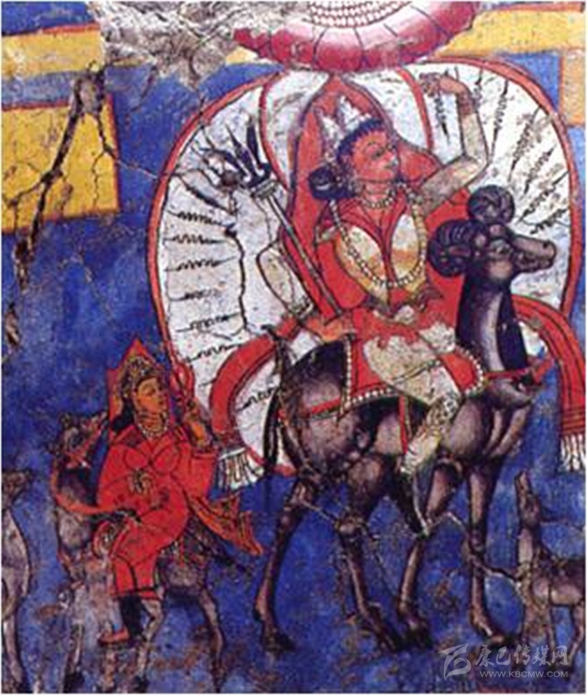 《騎羊女神》托林寺壁畫局部(公元十一世紀)。
