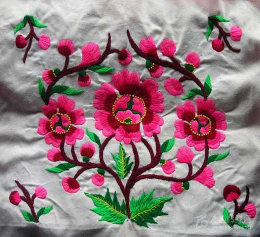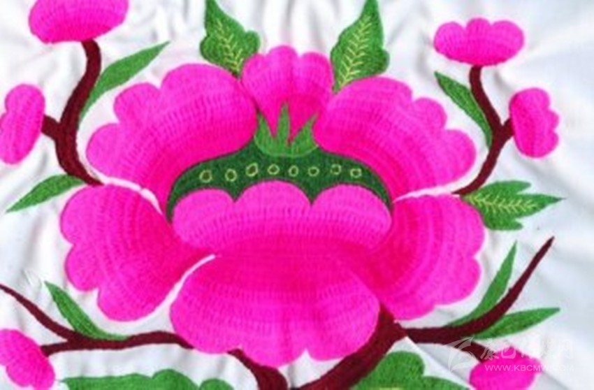 在魚通,刺繡以花朵為主。會(huì)繡花的女人,被稱為“花匠”。“小花匠”們從十多歲就開始接觸刺繡,通過年長(zhǎng)者口傳身授,自學(xué)的方式成為一代繡女。稚嫩的雙手,再經(jīng)過時(shí)間的洗禮,刺繡的技巧早已爛熟于心,在心的指引下,穿針引線,針尖如麥芒,各色陪底線來回,穿梭于布料的經(jīng)緯之間。買回青布,從下手的第一針開始,整幅圖的構(gòu)架便了然于心,各式花朵圖案成竹在胸,線條在暗自游走,勾勒越來越清晰。每一次的飛針走線,是婦人手上的一針針,一線線,都在為作品最后的完美收關(guān),錦上添花,做著必不可少的鋪墊。