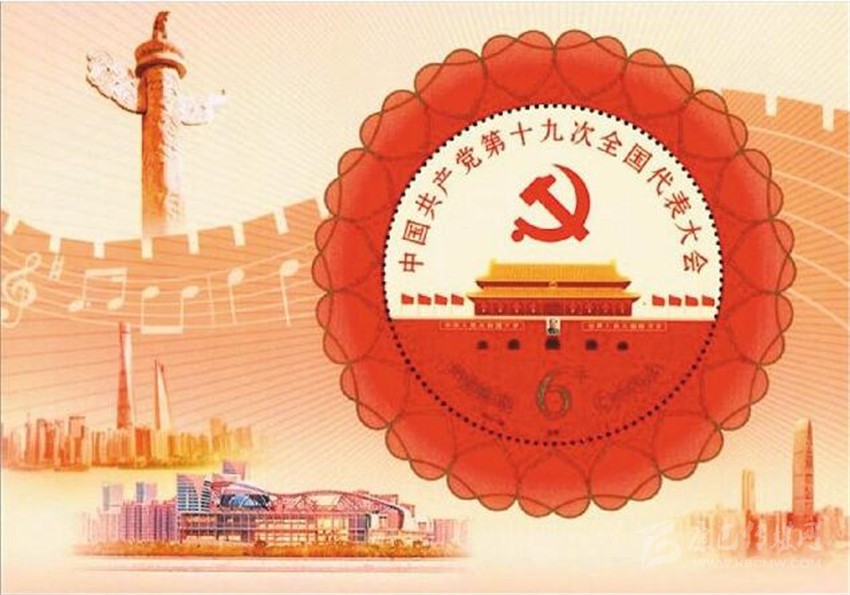 10月18日發(fā)行的《中國共產黨第十九次全國代表大會》紀念郵票小型張。