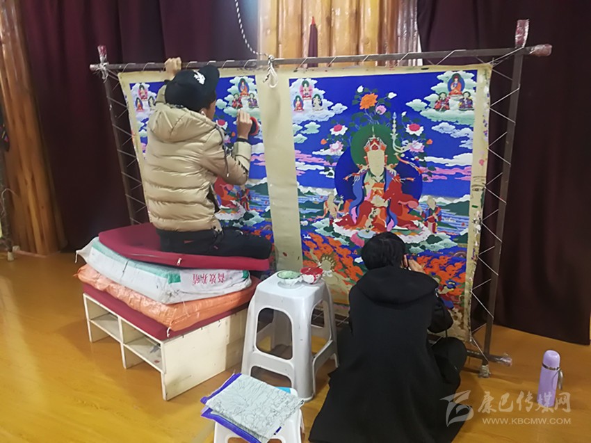 白馬澤仁就是“走出去”的典型,他也是唐卡藝術的傳承人,曾在深圳繪制唐卡十多年。在培訓基地門口,記者見到了這位著名畫師,聽說記者也來自深圳,我們的交談變得更加親切。白馬澤仁說,他是被雍珠洛吾請回來的,在去年的一場車禍中眼睛不慎受傷,現(xiàn)在主要任務是向學生傳授唐卡繪制技藝。