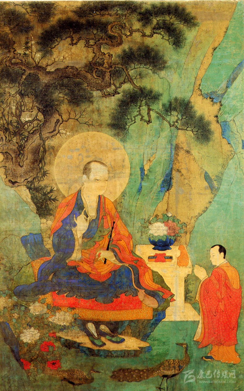 公元1408年,噶瑪巴·德銀協(xié)巴應(yīng)大明永樂皇帝之邀,前往南京弘法。明成祖朱棣命宮廷畫家將此隆盛之事繪制成了《噶瑪巴為明太祖薦福圖》,而后又把此圖做成織錦畫賜予了楚布寺。