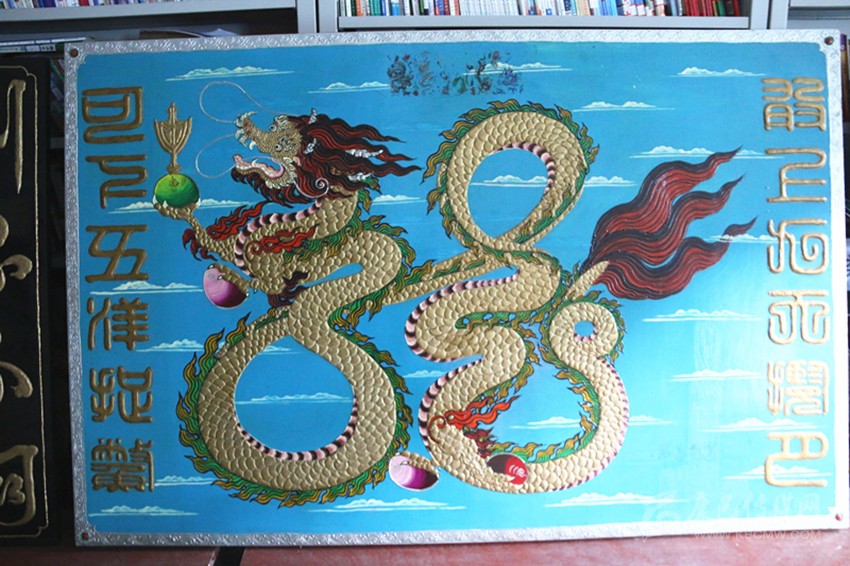 走進(jìn)王長生的工作室,他保存有古董級的電影放映機(jī)、留聲機(jī)、電話、黑白電視機(jī)、照相器材和吉他、二胡、笛子等樂器應(yīng)有盡有,看到這些古老的“裝備”,記者仿佛走進(jìn)了那段塵封的歲月。2008年,王長生創(chuàng)作的雕刻畫《昂首蒼穹》,走進(jìn)成都國際博覽中心,國家文化產(chǎn)業(yè)設(shè)計(jì)院的兩名專家評價(jià)說,作品的文化內(nèi)涵和藝術(shù)觀賞性都很高。王長生解釋說,龍是中華民族的圖騰,龍中之龍?jiān)⒁鉃樯暇盘鞌堅(jiān)?,下五洋捉鱉,反映了中華民族的豪氣。