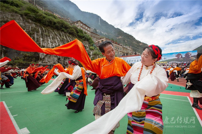 悠悠的牧歌、遼闊的草原、古老的盛裝,寄托著紅龍鄉(xiāng)兒女對盛會的吉祥祈愿和聲聲祝福;瓦多鄉(xiāng)鍋莊隊那別致的發(fā)飾“日月銀盤”,揮舞的水袖、律動的舞步,訴說著古老部落在黨的帶領(lǐng)下攻堅克難奔向小康的生動故事……