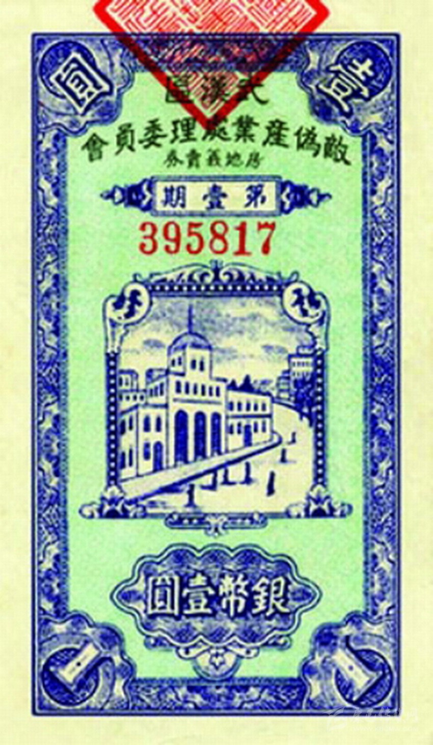 1949年3月,武漢市政府發(fā)行了100萬(wàn)張彩票,面值都是“銀幣一元”,可以買(mǎi)一張,中獎(jiǎng)率是兩萬(wàn)五千分之一,獎(jiǎng)品是位于漢口的別墅。推出彩票“房地義賣券”,以武漢區(qū)敵偽產(chǎn)業(yè)處理委員會(huì)名義發(fā)行,票幅高62毫米,闊106毫米,售價(jià)為銀幣壹元,計(jì)劃發(fā)行100萬(wàn)枚,計(jì)有39幢房屋充作獎(jiǎng)品,定于5月10日在漢口當(dāng)眾搖彩。1949年,正是國(guó)民黨政權(quán)風(fēng)雨飄搖之時(shí),因此5月10日的搖彩日也就成了彩票發(fā)行組織者的逃命日,六天后武漢解放,那“房地獎(jiǎng)”未能兌現(xiàn)。