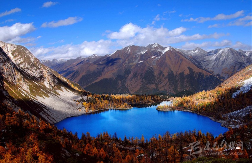 在這里,樹木、山峰、湖泊是如此的層次分明,一層一層的樹木有綠色、黃色、紅色,不同的色彩相互映襯,層林盡染,金碧輝煌,在連綿的群山之間頑強地生長著,吸允天地之精華,與山水為伴,與日月同輝。