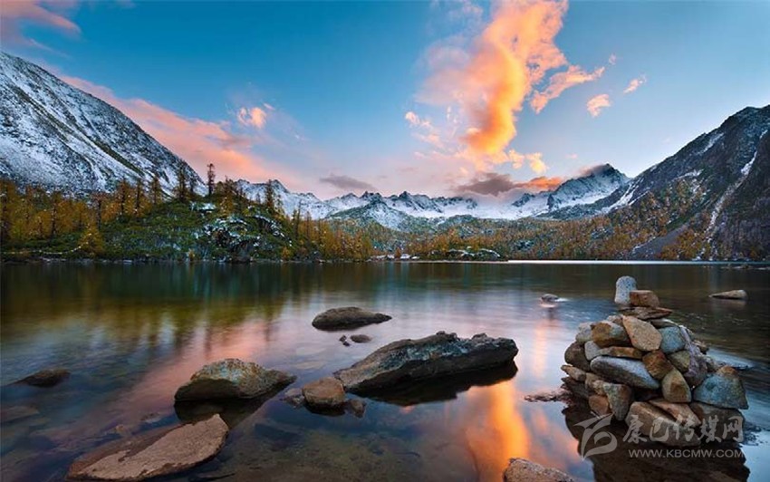 這里的樹木都是連排成片、整齊劃一的, 隨著季節(jié)的變換,呈現(xiàn)出不同的色彩,讓人不得不感嘆大自然的神奇。那一片紅彤彤的樺樹林, 盛開得如此熾烈,存蓄了無窮的力量,恨不得把周圍的湖水、山峰通通染紅,渲染得嬌媚動人。