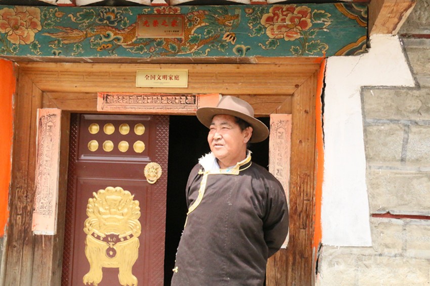 羅布扎西家門口的全國文明家庭牌匾格外引人注目。
