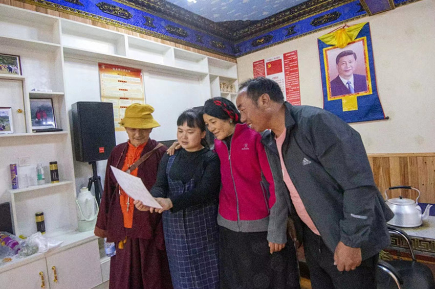 由于沒有到蟲草季節(jié),村民說(shuō)沒有什么能拿得出手送我的,說(shuō)是等挖了蟲草給我寄一點(diǎn),我受了這么大的苦難,要好好補(bǔ)補(bǔ)身體。村支書澤下,簡(jiǎn)單地給大家說(shuō)了我即將離開,說(shuō)了我在醫(yī)院住了四個(gè)多月,說(shuō)了我這兩年為大家修房子、募捐、結(jié)對(duì)子等等。我站在哈巴村活動(dòng)中心門口,每個(gè)人都排著隊(duì)為我獻(xiàn)著哈達(dá),邊為我戴上邊哭,我也忍不住哭了起來(lái)。哈達(dá)實(shí)在太多了,我也帶不走,就放在了村上。有一個(gè)老奶奶,叫澤仁拉呷,是我結(jié)對(duì)子的貧困戶,她揣著一張100塊錢,一定要給我,叫我收下。100塊錢,對(duì)于我來(lái)說(shuō)并不多,對(duì)于村里的貧困戶來(lái)說(shuō),那是要賣好多斤土豆才能賣到的錢,我當(dāng)然沒有收,拿給她了,我看到她一直哭,心里酸酸的。是的,短暫的兩年駐村時(shí)光,為他們做的太少太少了,他們卻把我當(dāng)親人一樣,記掛著,關(guān)心著,心疼著。