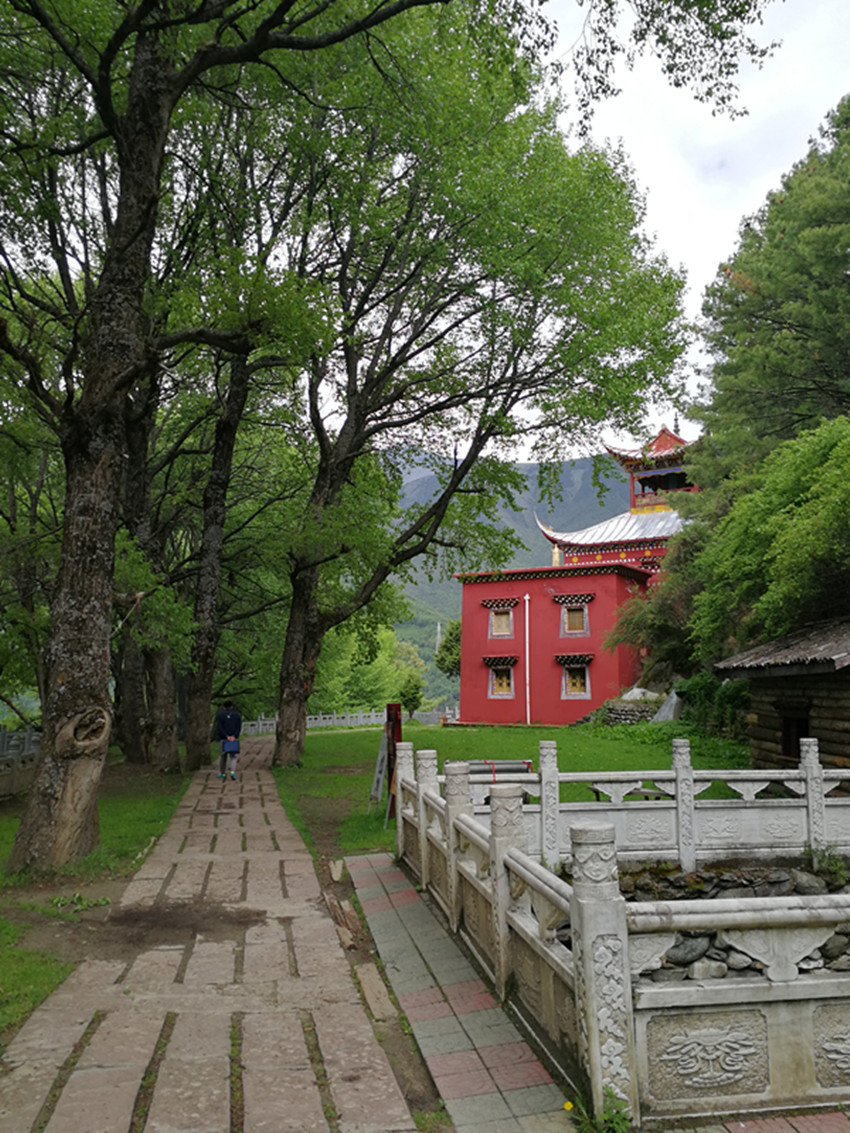 中國民俗有“大年初一不竄門”,這一天,康定人很多都會去寺廟燒香敬佛。前年大年初一,我便去了觀音閣。進(jìn)門處,有專供燒紙錢的地方。再上階梯,有長列的白色佛塔,進(jìn)寺就可點燈朝拜。出了觀音閣,我順道去找獅子巖。公路一側(cè)的堡坎已將原來的小徑斬斷,翻上堡坎,小徑幾乎已沒了蹤跡。再仰頭望,獅子巖已是掩映在濃密的綠樹雜叢間。長在右側(cè)的花椒樹,已不見蹤影。幾株高大的白楊樹遮天蔽日,最大的都長到盆口粗了?!鞍倌陿淠尽保@無疑還是當(dāng)年那幾棵白楊樹了。我艱難地鉆過荒叢爬到獅子巖腳下,那“祭祀臺”上如過去一樣擺放有貢品,旁邊和樹枝上掛有經(jīng)幡,但周圍仍沒有一絲煙熏火燎過的痕跡。