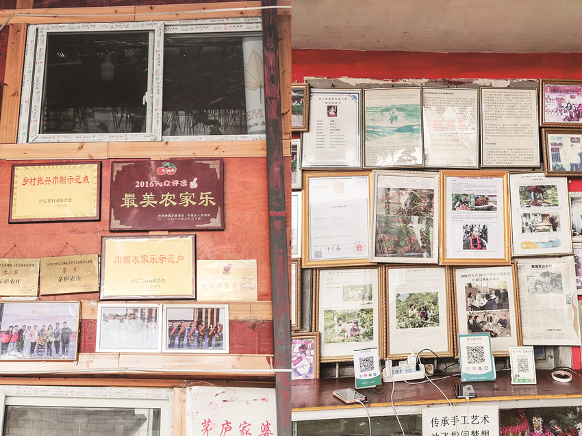 她說:“一開始,我的目的就是想掙錢,想要這個(gè)家庭擺脫貧困。在開辦這個(gè)農(nóng)莊之前,我家一直就在借債還債的循環(huán)中苦苦掙扎。天有不測風(fēng)云,2006年丈夫華建做心臟手術(shù),2007年又做膽息肉手術(shù),花光了四處借來的四萬多塊錢,丈夫出院回家后,不能外出打工,又要急著還人家的錢,在無計(jì)可施的時(shí)候,我們想到了搞養(yǎng)殖,養(yǎng)魚魚死光了,養(yǎng)雞倒是成功了,但是賣不出去,基本虧了個(gè)底朝天。我只好四處打工,但是基本上都處于入不敷出的尷尬境地?!?013年長子華啟明住院做脾裂手術(shù),2015年公公腦梗,又去州醫(yī)院手術(shù),好像前半輩子就是借錢、還錢,拆東墻補(bǔ)西墻,無可奈何。正當(dāng)經(jīng)濟(jì)上緊張得不可開交,覺得山窮水盡時(shí),國家出臺(tái)了鄉(xiāng)村振興戰(zhàn)略,她響應(yīng)國家號(hào)召,想到了回到家鄉(xiāng)開辦農(nóng)家樂。第一年,在“婦女創(chuàng)業(yè)”貸款8萬元、信用社貸款16萬元,把農(nóng)家樂勉強(qiáng)辦起來了。在幾年的經(jīng)營中,“茅廬農(nóng)莊”的口碑越來越好,在2016年被杵坭鄉(xiāng)授予“2016大眾評(píng)選最美農(nóng)家樂”,在2018年人氣美食商家網(wǎng)評(píng)選為“瀘定縣網(wǎng)友喜愛美食商家評(píng)選季軍”,2019年人氣生態(tài)評(píng)選網(wǎng)評(píng)選為“瀘定縣網(wǎng)友喜愛生態(tài)休閑農(nóng)莊評(píng)選季軍”。現(xiàn)在,農(nóng)莊的生意越來越好,規(guī)模越來越大,家里的日子越來越好,一家人也過上了幸福的生活。