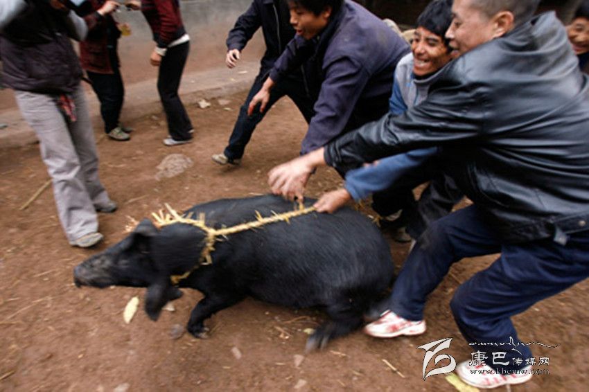 割豬蹄給娃娃們拿到山上玩。大人陪他們?nèi)计痼艋?,指揮他們將豬蹄不分你我地拋進(jìn)火中燒熟后,你一塊,我一坨地掏來吃,以養(yǎng)成團(tuán)結(jié)友愛的道德風(fēng)尚。