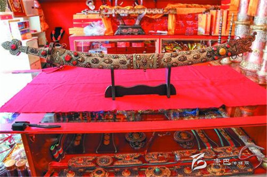 最近公路喜劇電影《六月與弓箭》正在白玉縣境內(nèi)拍攝,電影劇情中,故事是從一把白玉河坡藏刀展開(kāi)。提到白玉藏刀,懂行的人都會(huì)為它所驚嘆。白玉河坡鄉(xiāng)工匠打的藏刀可以說(shuō)是聞名世界,他們的定貨單來(lái)自拉薩、印度、尼泊爾、不丹、錫金等地。河坡鄉(xiāng)并非只有藏刀工藝精湛,河坡在歷史上被譽(yù)為“格薩爾兵器庫(kù)”,在這里家家都有手工作坊,現(xiàn)在兵器雖然不做了,但是工藝流傳了下來(lái),河坡制造的藏刀、佛像、馬鞍、酥油桶和各種金銀首飾,一直都很暢銷,出售這些手工藝品也成為當(dāng)?shù)鼐用竦闹饕杖雭?lái)源。