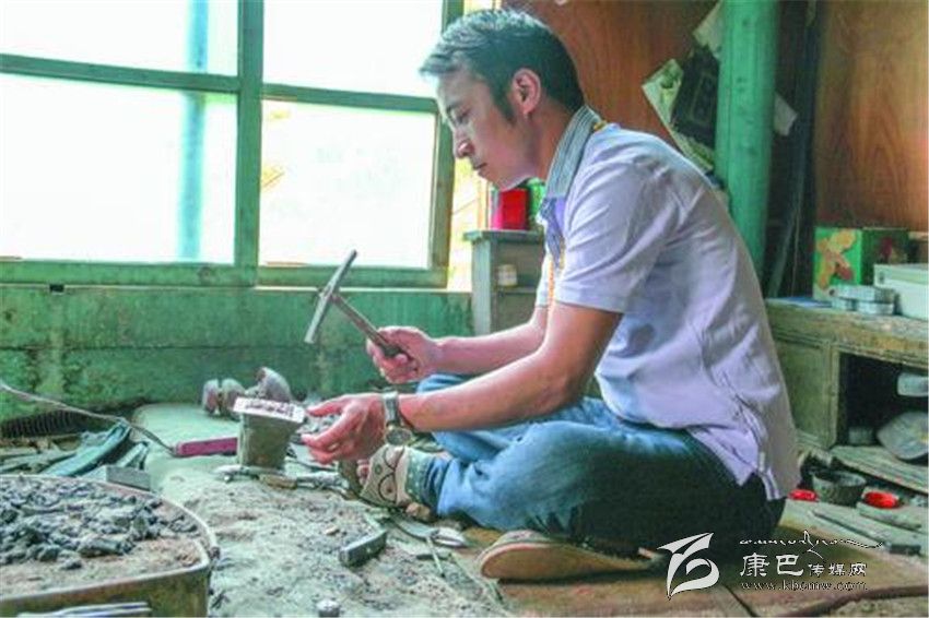 從金沙江支流贈(zèng)曲河溯流而上,不到半個(gè)小時(shí)便可到白玉縣河坡鄉(xiāng)。就是這個(gè)不起眼的“小地方”,從1300多年前便開(kāi)始鑄造兵器,曾被譽(yù)為“格薩爾王的兵器庫(kù)”。2008年,“藏族金屬鍛造技藝”被列入國(guó)家級(jí)非物質(zhì)文化遺產(chǎn)名錄,其中便包括以河坡為代表的“藏刀鍛制技藝”。 在記者的想象中,河坡鄉(xiāng)應(yīng)該是一派作坊連片、熱火朝天、叮叮當(dāng)當(dāng)?shù)氖止ぶ圃靾?chǎng)景。然而,當(dāng)記者來(lái)到這里,卻沒(méi)有看到這樣的景象。原來(lái),河坡鄉(xiāng)的手工藝生產(chǎn)模式以家庭作坊為主,每家每戶的“工作室”常常設(shè)在自家房屋二樓一角。在白玉河坡鄉(xiāng)每個(gè)家庭作坊,通常都有自己擅長(zhǎng)的專業(yè)產(chǎn)品和特色。例如,手工藝人根秋丹貞擅長(zhǎng)制作佛具, 伍金則擅長(zhǎng)打制藏刀。其他如村多、麥達(dá)、麥學(xué)等各個(gè)村寨,還分散著諸多以生產(chǎn)馬具、飾品、日常生活用品等為主的家庭作坊。