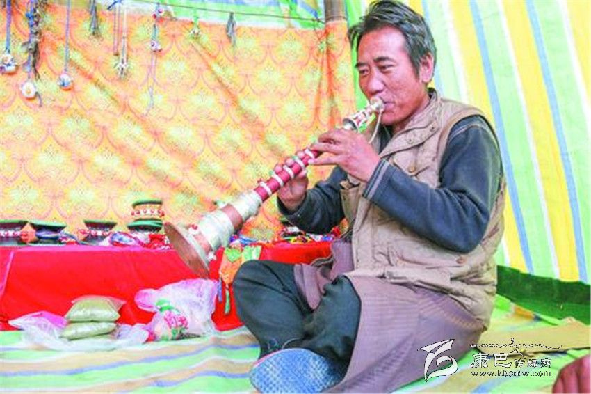 在河坡一代,像根秋丹貞、伍金這樣的手工藝人還有很多很多。其麥一家和根秋丹貞家一樣,也是主要制作佛器,在他的記憶里,爺爺、父親、叔叔、伯伯都是制作藝人,而自己家到底有多長(zhǎng)的制作歷史,連他都說(shuō)不清楚。51歲的扎西次仁這幾天有點(diǎn)忙,聽(tīng)說(shuō)噶陀寺最近要舉行法會(huì),而以法器制作為主的他,早早的就在噶陀寺的臨時(shí)商點(diǎn)支起了“小賣部”,在這里叫賣自己家的精品法器,嘎烏、計(jì)數(shù)器、法號(hào)等等讓記者看得應(yīng)接不暇。
