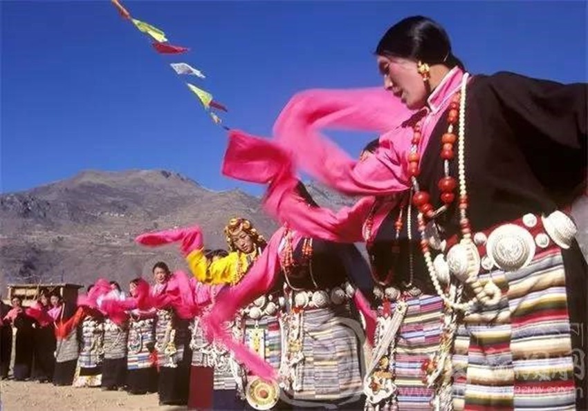 新龍鍋莊享譽(yù)藏區(qū),被譽(yù)為中國鍋莊之鄉(xiāng)。新龍鍋莊獨(dú)樹一幟,風(fēng)格與其他藏區(qū)的鍋莊迥異。新龍鍋莊據(jù)說是在格薩爾時代,有一位會唱山歌的商人,名叫阿俄絨布,他游走經(jīng)商各地。每到一個地方,阿俄絨布總是一邊經(jīng)商,一邊唱著山歌。他來到新龍以后,就獨(dú)創(chuàng)了一種舞蹈,并傳授給當(dāng)?shù)厝?,這種舞蹈很快在新龍地區(qū)流行起來。由于新龍與世隔絕,這種舞蹈沒有外傳,發(fā)展成為現(xiàn)在的“新龍鍋莊”。