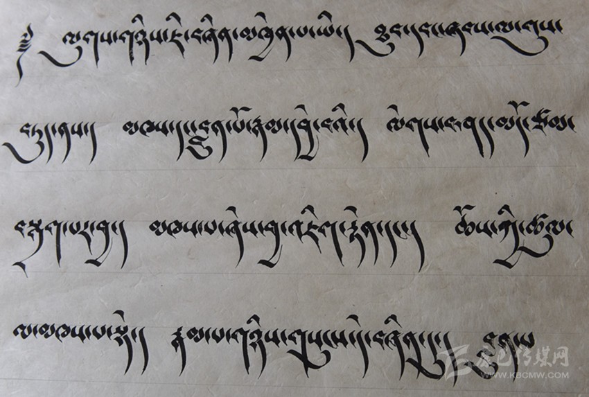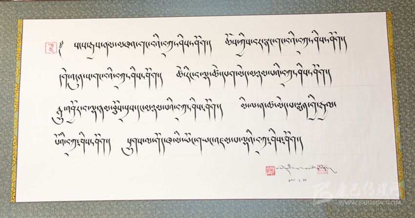 談到藏文書法作品,昂旺曲批喜歡用諸如“淳樸、干凈、善良”的字眼形容藏文書法作品的風格?!耙粋€字就是一個人,字有肉也有骨頭。”這是昂旺曲批對“德珍派”書法的理解,在昂旺曲批眼中,藏文字都是有生命的,需要寧心靜氣方能通過手中的筆尖,彼此呼應。