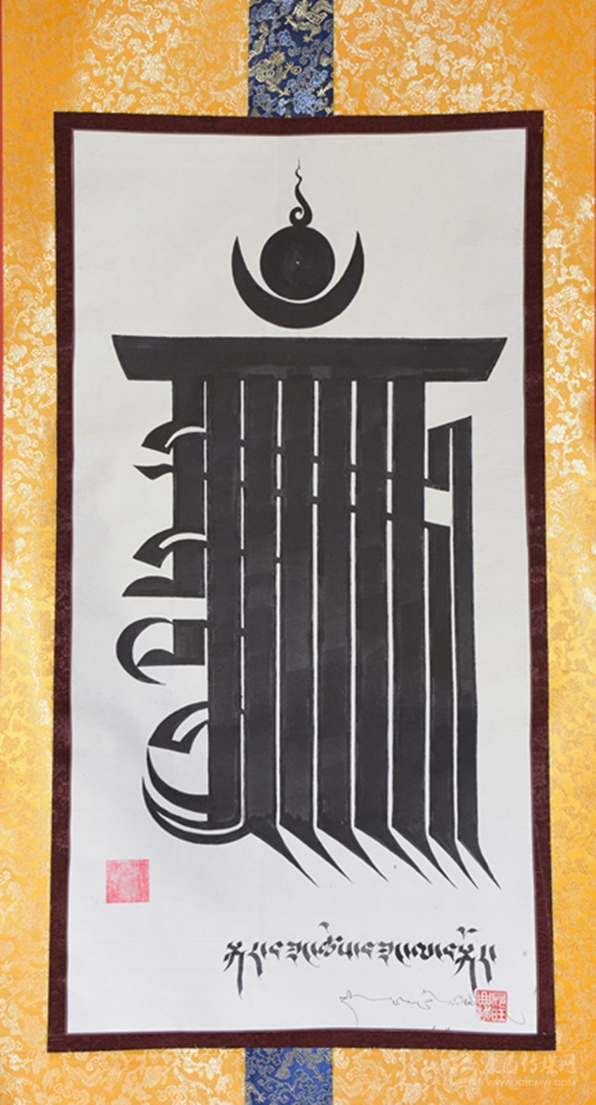 “創(chuàng)新也是為了讓更多的年輕人能夠拉近與藏文書法之間的距離,讓他們更好地理解文化傳統(tǒng)中的精髓。”昂旺曲批把這一想法也踐行到了唐卡畫的創(chuàng)作中。他正在創(chuàng)作上百幅不上色的唐卡作品,配上藏文書法,以期通過簡潔之美,讓更多年青人關注藏文書法和唐卡藝術。