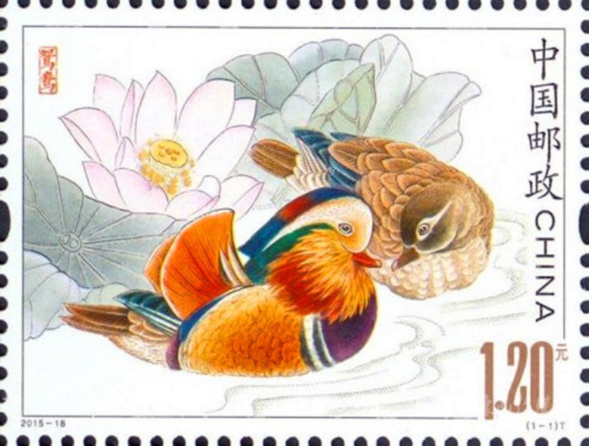 2015年8月20日發(fā)行的《鴛鴦》郵票。
