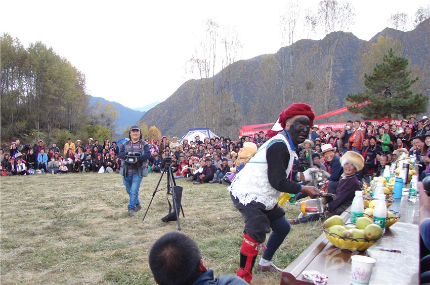 其實,對于這種畫臉的劇種,我以為,它最初應(yīng)該來源于地頭文化,古時候的嘉絨農(nóng)村,文化生活異常貧乏,在歷史的長河中,原住民主要依靠放牧及種地為生,在一起勞作時,男人和女人之間常常會開一些的玩笑,一般無所避諱。
