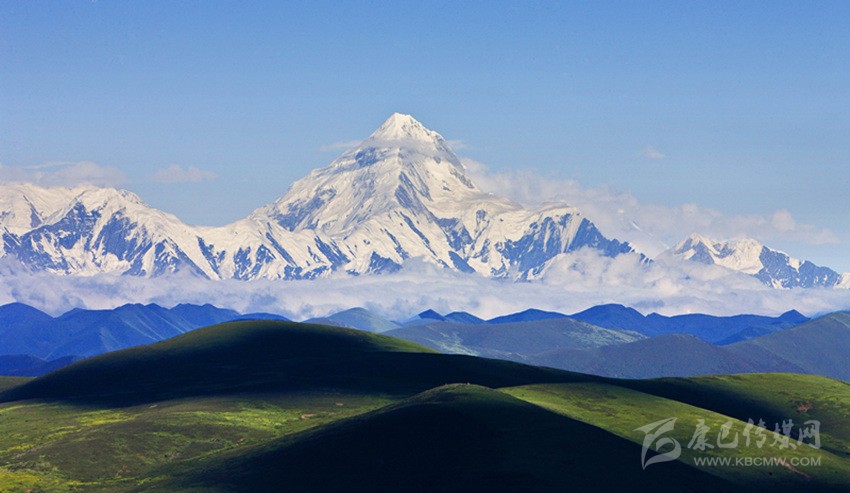 “2017年的夏天,攝影師廖鐵軍在九眼橋附近的天紫界大廈拍到貢嘎山。那是幾次雨后難得一遇的好天氣,成都市區(qū)層層疊疊的高樓之上,西南方向天邊的雪山一字排開,在朝陽下呈現出誘人的金色,遙遠而清晰?!?/p>
