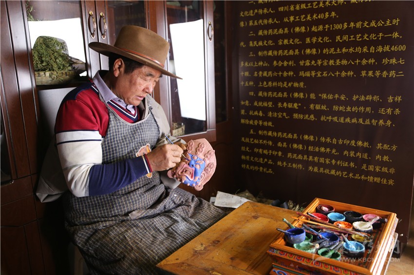 作為一名旅行者,四龍降澤老人熱情地接待了我,他是新龍縣人,因?yàn)槠拮邮堑梨谌?,退休后隨妻子在道孚生活。從14歲開始學(xué)習(xí)制作藥泥面具,迄今為止已經(jīng)有了50年的制作經(jīng)歷,手藝愈發(fā)成熟,其中一句“藥配好了是藥,配不好就是毒”讓人印象深刻,因?yàn)榈絹淼臅r(shí)間恰巧,有幸見到大師制作藥泥面具的過程,算是這場(chǎng)沖動(dòng)旅行的意外驚喜。
