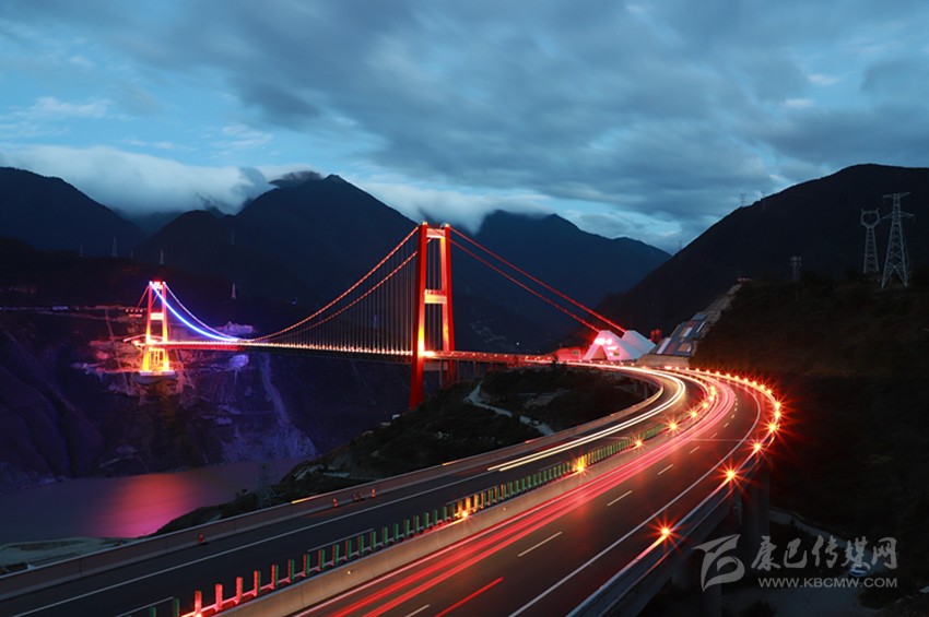 河流的右岸,簇生著灌木叢,遠(yuǎn)處一條小徑緊貼著崖壁,順著山勢和河流的變化而起伏著。近處,巨石后有著叢生的荊棘,那些石塊上,飛濺起來的浪花越過河道,將飛沫灑在了這些巨石上,濕漉漉的,巖石上也因此布滿了黑色的帶狀水漬。而稍遠(yuǎn)處,就是橫斷山脈腹地特有的藏式伸臂橋,橋墩是用圓木橫豎交替架置,中以石塊填實(shí)置于橋墩中為橋身,像手臂一樣伸向河中,逐層向河中遞伸數(shù)尺。當(dāng)兩岸橋墩伸出的木排到可以搭木桿的程度時,最后在兩個"大手臂"上搭上數(shù)根兩面削平的木桿,就可以通行了。