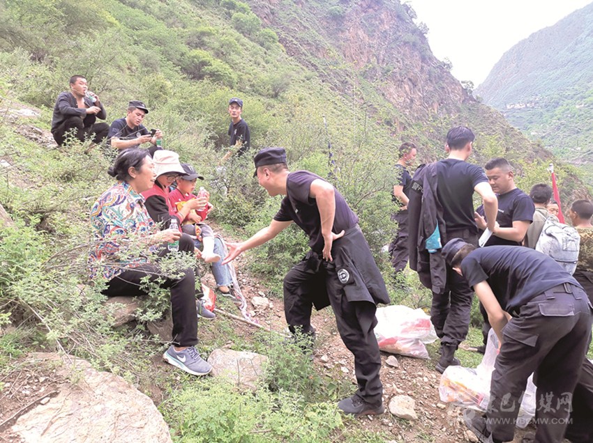 河谷兩岸,峭壁聳立,兩岸的植被并不是那么繁茂。崖壁上簡單生長著綠色的藤蔓以及耐旱的柏樹,它們占據(jù)了巖縫,倔強(qiáng)地挺立著。翠綠的枝條點(diǎn)綴在灰色的巖石中,那孤單和寂寥在一瞬間被注入了無窮的活力。走約十余里時,兩岸的山體仿佛被一種無形的力量所擠壓,一起向著后面倒去,露出更加闊達(dá)的山谷來。于是,山谷底有了人家,有了桃林,有了田地,更有了在梨花、桃花叢中飛舞的蜜蜂、小鳥。