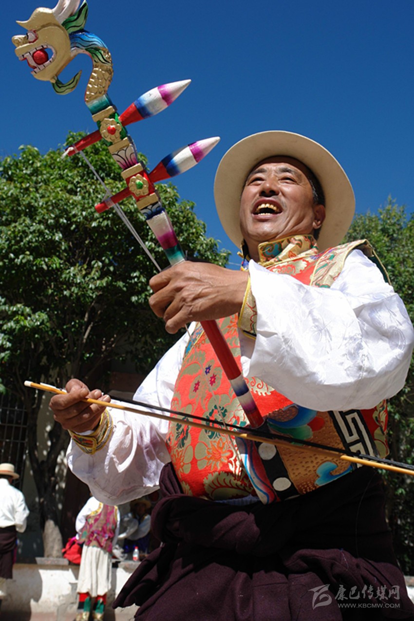 八歲時,就從外婆那里學會了拉“胡幾”,拉得不好,鄰居們笑:“咿咿呀呀的,像驢子在叫”。人們在田間地角跳弦子時,他夾在圈子里“臊堂子”調(diào)皮,后來便跟著大人跳,跳著跳著就學會了。有些動作不標準,外婆和母親就會笑著糾正。1972年,縣上的“毛澤東思想文藝宣傳隊”選中了剛滿十四歲的他,在“文革”中后期鋪天蓋地的運動中,他們上山下鄉(xiāng)進軍營送文化,弦子舞技得到強化,藏二胡就是在這期間越拉越好的。那時候糧食還沒有過關(guān),公社分配的工分又重,家里的日子過得很艱難。經(jīng)常跟宣傳隊唱唱跳跳,可以不做那些繁重的農(nóng)活了,他還暗地里偷偷慶幸過?!拔母铩苯Y(jié)束后,縣上成立了業(yè)余弦子隊,他自然也在其中,這時,他已經(jīng)能記住二百多首弦子詞曲了。西藏恢復雪頓節(jié)那年,應該是1986年吧,他們又跳到了圣地拉薩,受到了西藏各地官員和群眾的歡迎??途永_的巴塘人在雪頓節(jié)盛典上看到巴塘弦子,流下了激動的淚水,很多人過來跟他們“打招呼”,問候家鄉(xiāng)人。跳弦子五十多年,去拉薩應該是最難忘的事情了?!鞍桌瓫_!說拉薩道拉薩,拉薩建在海面上?!边@是小時候外婆教他唱的。和所有的藏族一樣,他從小就向往那塊圣地。八十年代交通極其不方便,去成都都要走整整四天,去拉薩多難啊,所以村里人都很羨慕他們弦子隊。他還記得,在向布達拉宮虔身朝拜的那一刻,他流下了感動和幸福的淚水。
