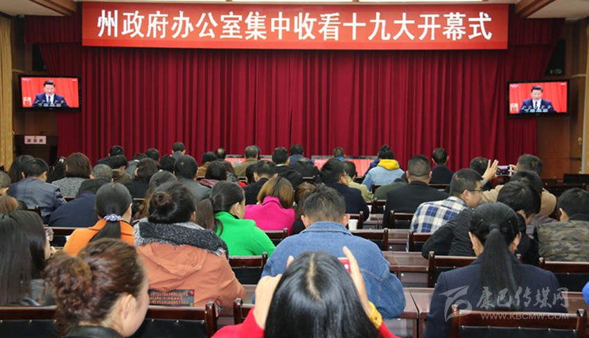 中國共產(chǎn)黨第十九次全國代表大會18日上午在人民大會堂開幕。習(xí)近平代表第十八屆中央委員會向大會作了題為《決勝全面建成小康社會 奪取新時代中國特色社會主義偉大勝利》的報告?!安煌跣?,牢記使命,高舉中國特色社會主義偉大旗幟,決勝全面建成小康社會,奪取新時代中國特色社會主義偉大勝利,為實現(xiàn)中華民族偉大復(fù)興的中國夢不懈奮斗。”上午9時,我州機(jī)關(guān)單位、學(xué)校、農(nóng)村牧區(qū)、企事業(yè)單位、駐軍等干部職工和農(nóng)牧民群眾圍坐在電視機(jī)旁,聚精會神聆聽十九大報告,觸摸獲得感,說說心里話。藍(lán)圖催人奮進(jìn),成就鼓舞人心,全州各族人民表示,要在黨的堅強(qiáng)領(lǐng)導(dǎo)下,擼起袖子加油干,與全國人民一道豪邁步入小康社會。