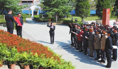 在瀘定橋紀念館重溫入黨誓詞。本網(wǎng)資料庫圖片
