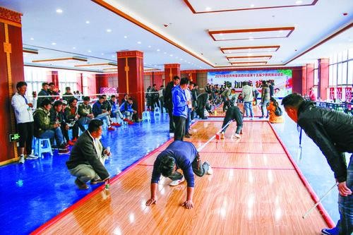 今年,我州將由115名運動員、教練員等組成11支運動隊,參與賽事設(shè)置的8個競賽項目和2個表演項目,其中有兩支隊伍將參與綜合類表演項目比賽。我州總參賽人數(shù)相比上一屆略有減少。我州參加綜合類表演項目比賽的節(jié)目是《瑪亞切通》和《炯動》?!冬攣喦型ā纷g為孔雀吃水,主要體現(xiàn)力量和平衡的動作;《炯動》取材于藏民族農(nóng)村修建房屋時的勞動場面,以青年男女在勞動過程中載歌載舞對歌或比拼勞動成果、質(zhì)量、進度為內(nèi)容,主要比拼身體的力量和靈活度。我州參加競技類表演項目比賽的節(jié)目是《嘎久》?!陡戮谩芬鉃榉嗰R鞍或吉祥翻越,是藏族人民節(jié)日聚會時的一種競技體育活動,主要比拼靈活性、趣味性和技巧性。