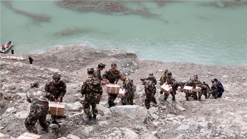 堰塞體最理想的觀測點在滑坡點對面——白玉縣絨蓋鄉(xiāng)的一座山坡上,那里地勢險峻、人跡罕至,只能從最近的則巴村徒步攀登15公里抵達。寇量一行于深夜到達則巴村,稍作休整,待次日天色初明,便開始急行挺進。一路山勢陡峭、荊棘密布,行進極為艱難驚險。4日9時過,寇量等人終于抵達預定觀測點位。9時30分,寇量利用手機將第一組堰塞湖圖像傳送到應急管理部指揮中心。隨后,又用單兵圖傳設備實現(xiàn)了與北京的第一次視頻連線,徹底打破災害核心區(qū)域的“信息孤島”狀態(tài)。