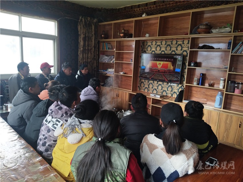 爐霍縣新都鎮(zhèn)望果社區(qū)的活動室里,社區(qū)群眾正聚精會神地收看中央電視臺直播的慶祝改革開放40周年大會。