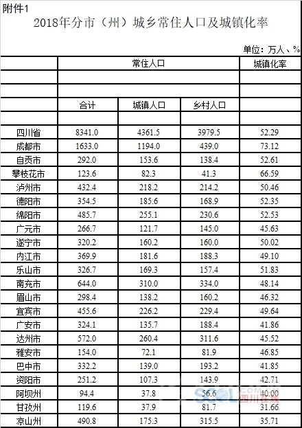 3月19日上午,四川省人民政府新聞辦公室召開新聞發(fā)布會,發(fā)布2018年四川省人口統(tǒng)計公報。四川新聞網記者從會上獲悉,四川省公安廳提供的數(shù)據(jù)顯示,2018年末全省戶籍人口9121.8萬人,其中城鎮(zhèn)人口3271.5萬人,鄉(xiāng)村人口5850.3萬人,戶籍人口城鎮(zhèn)化率35.87%。