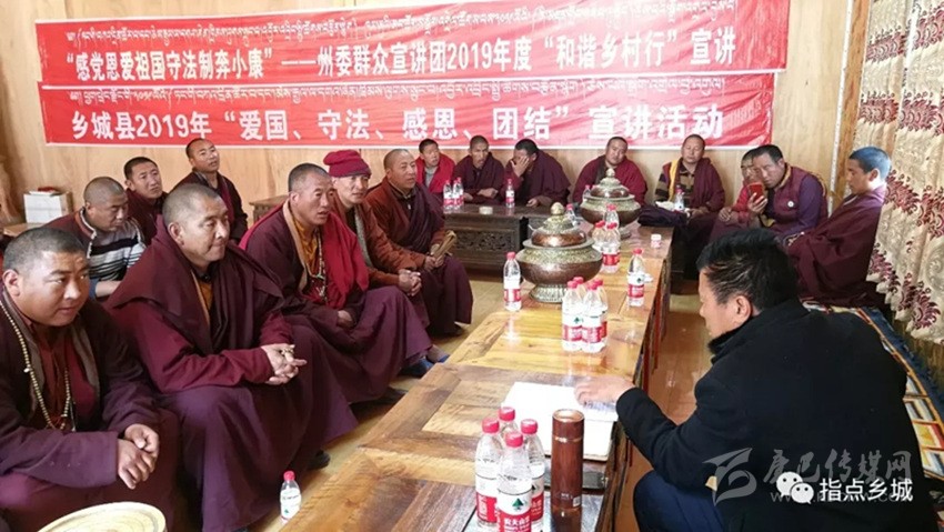 本網(wǎng)訊 4月12日,“感黨恩、愛祖國、守法制、奔小康”——州委群眾宣講團2019年度“和諧鄉(xiāng)村行”宣講走進鄉(xiāng)城縣熱打鄉(xiāng)和白依鄉(xiāng)丁真嶺寺。