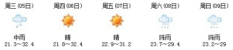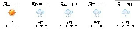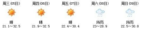 5日開始一直到9日都是多云到晴的天氣,日最高氣溫27℃左右。每天都有陣雨(小雨),考生出行應(yīng)防山地災(zāi)害。
